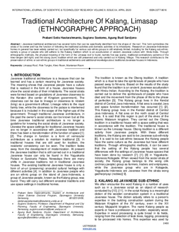 Prabani, Seti Hastorahmanto and Sugiono, Soetomo and Agung, Budi Sardjono (2020) Traditional Architecture Of Kalang, Limasap (ETHNOGRAPHIC APPROACH). INTERNATIONAL JOURNAL OF SCIENTIFIC & TECHNOLOGY RESEARCH, 9 (4). pp. 2468-2475. ISSN 2277-8616