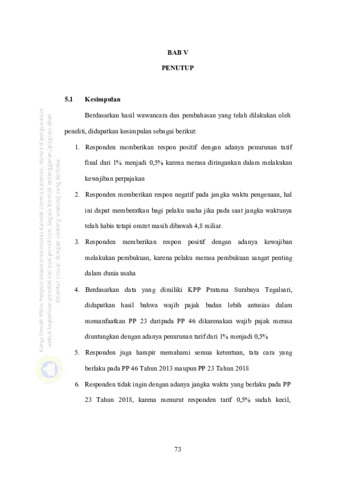 Hasil dari penelitian ini ditinjau dari respon kognitif sejumlah 5 orang memberikan respon positif dengan setuju pada tarif final 0,5%. ditinjau dari respon afektif para responden memberikan penjelasan bahwa tarif 0,5% lebih ringan daripada tarif sebelumnya. Ditinjau dari respon konatif responden berharap jangka waktu pengenaan dihapuskan karena hal itu dapat memberatkan wajib pajak jika jangka waktu telah habis.