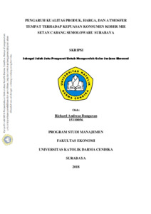 Bungaran, Richard Andreas (2019) PENGARUH KUALITAS PRODUK, HARGA, DAN ATMOSFER TEMPAT TERHADAP KEPUASAN KONSUMEN KOBER MIE SETAN Cab SEMOLOWARU SURABAYA. Undergraduate thesis, Universitas Katolik Darma Cendika Fakultas Ekonomi.
