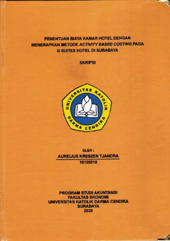 Tjandra, Aurelius Kreszen (2020) Penentuan Biaya Kamar Hotel dengan Menerapkan Metode Activity Based Costing pada G Suites Hotel Di Surabaya. Undergraduate thesis, Universitas Katolik Darma Cendika Surabaya Fakultas Ekonomi.