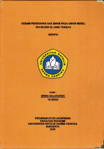 Salakopak, Erina (2020) Desain Penerapan SAK EMKM pada UMKM Mebel Sri Rejeki Jawa Tengah. Undergraduate thesis, Universitas Katolik Darma Cendika Surabaya Fakultas Ekonomi.
