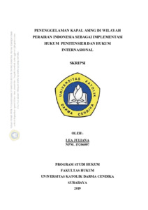 Juliana, Lea (2019) Penenggelaman Kapal Asing Di Wilayah Perairan Indonesia Sebagai Implementasi Hukum Penitensier Dan Hukum Internasional. Undergraduate thesis, Universitas Katolik Darma Cendika Fakultas Hukum.