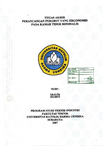 Lie, Li Na (2007) Perancangan Perabot yang Ergonomis pada Kamar Tidur Minimalis. Undergraduate thesis, Universitas Katolik Darma Cendika Fakultas Teknik.