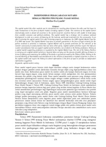 The capital market like other markets can be interpreted as a meeting place between the seller and the buyer to make transactions in the form of objects traded, including capital or funds. The existence of the capital market itself already exists in almost all countries in the world except for countries that are still unable to break away from unstable economic and political problems. The capital market has a strategic role to advance national development in order as a source of financing for the business world and investment for the community. In an effort to develop the capital market to be able to develop properly in Indonesia, the 1995 Capital Market Law No. 8 of 1995 was issued. The Capital Market Law aims to provide guarantees in the form of legal certainty for the parties involved in activities in Indonesia. Capital Market and to provide protection for the interests of the investor community to avoid practices that can harm either party. Capital market activities require the help of a number of professions that can support capital market activities, one of which is the Notary profession. Notary as a capital market supporting profession is regulated by the Capital Market Law. The role of the Notary Position in carrying out a capital market activity is required when carrying out the process of public offering of shares in terms of making and examining the validity of the deeds or agreements made by the Notary Public relating to the General Meeting of Shareholders and amendments to the Articles of Association or bylaws of parties or actors in the capital market and require the Notary to submit information in the form of input or provide an independent information suggestion.