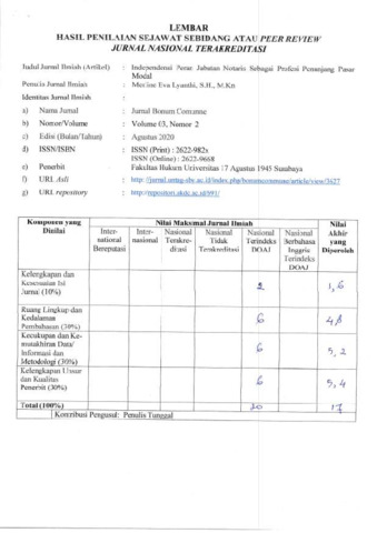 LEMBAR PENILAIAN JURNAL INDEPENDENSI PERAN JABATAN NOTARIS.pdf Download (267kB) | Preview |