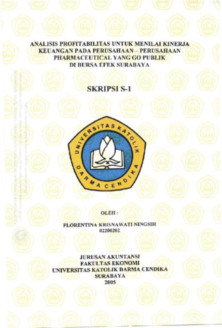 Ningsih, Florentina Krisna (2005) Analisis Profitabilitas Untuk Menilai Kinerja Keuangan pada Perusahaan - Perusahaan Pharmaceutical yang Go Publik di Bursa Efek Surabaya. Diploma thesis, Universitas Katolik Darma Cendika Fakultas Ekonomi.