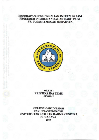 Temu, Kristina Ina (2005) Penerapan Pengendalian Intern dalam Prosedur Pembelian Bahan Baku pada PT. Susanti Megah Surabaya. Undergraduate thesis, Universitas Katolik Darma Cendika Fakultas Ekonomi.