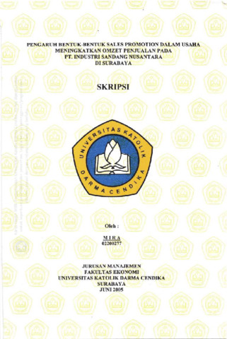 Mira, Mira (2005) Pengaruh Bentuk-Bentuk Sales Promotion Dalam Usaha meningkatkan Omzet Penjualan pada PT. Industri Sandang Nusantara di Surabaya. Undergraduate thesis, Universitas Katolik Darma Cendika Fakultas Ekonomi.