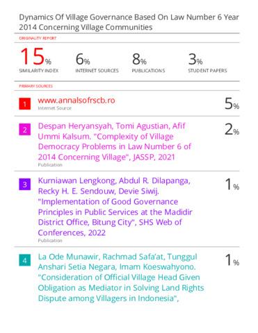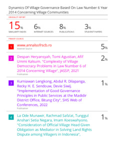 Hasil Similarity_Dynamics Of Village Governance Based On Law Number 6 Year 2014 Concerning.pdf Download (827kB) | Preview |