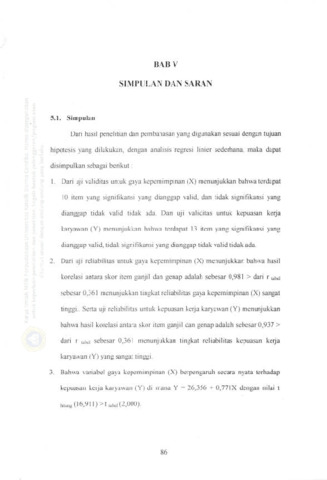 Pemimpin sangat berperan penting untuk memimpin karyawan dalam suatu organisasi, hal ini sangat mempengaruhi motivasi karyawan dalam bekerja untuk mencapai kinerja karyawan dan kepuasan kerja karyawan. Dengan adanya kepemimpinan yang tinggr tersebut, diharapkan para karyawan bisa melakukan pekeqaan dengan baik dan lancar, sehingga tercipta hasil pekeqaan yang bagus dan optimal pula, dengan demikian kepuasan akan terjadi baik bagi pimpinan itu sendiri, dan bagi para bawahan PT. Bank <(X" Surabaya. Dalam hal ini kepemimpinan dapat diklasifikasikan dalarn beberapa gaya sesuai dengan jiwa pemimpin yang dimiliki oleh pemimpin itu sendiri. Kepernimpinan yang diterapkan di Bank "X" Surabaya pada saat ini cenderung bersifat kharismatik. Namun, secara individu tidak selnua karyawan menilai bahwa Gaya kepemimpinan Bank "X" belum tenfu sama. Berdasarkan uraian di atas, maka penulis tertarik mengadakan penelitian mengenai gaya kepemimpinan dengan judul : Pengaruh Gaya Kepemimpinan Terhadap Kepuasan Kerja Karyawan Pada PT. Bank "X" Surabaya. Apakah ada pengaruh antara gaya kepemimpinan dengan kepuasan kerja karyawan pada PT. Bank "X" Surabaya ? Jenis penelitian yang digunakan regresional. Gaya kepemimpinan (X), adalah mempengaruhi penampilan orang lain yang mana dipengaruhi oleh seorang yang berfungsi sebagai pemirnpin. Kepuasan keqa (Y), adalah variabel yang diukur dari harapan dan kinerja atau hasil yang dirasakan para karyawan, dimana unsur-unsur kepuasan ke{a karyawan. Sampel yang digunakan sebanyak 50 karyawan. Pengolahan data dengan uji validitas, uji reliabilitas, analisis regresi linier sederhana, analisis koefisien determinasi, pengujian hipotesis dengan uji t. Pengujian hipotesis dilalrukan dengan teknik analisis data statistik yaitu analisis dengan program SPSS I L1.