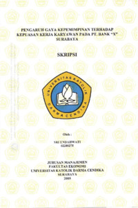 Endahwati, Sri (2005) Pengaruh Gaya Kepemimpinan Terhadap Kepuasan Kerja Karyawan pada PT. Bank "X" Surabaya. Undergraduate thesis, Universitas Katolik Darma Cendika Fakultas Ekonomi.