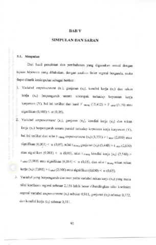 *karyawan Bagian Pendukung. Operasional berpengaruh secara simultan dan parsial pada PT. Bank central Asia Tbk. cabang Darmo Surabaya ? dan diantara variabil faktor-faktor kepuasan kerja karyawan manakah yang mempunyai pengaruh dominan terhadap kepuasan kerja karyawan bagian pendukrurg operasionat pada pr. Bank central Asia Tbk. cabang Darmo Surabaya ? Tujuan penelitian ad-aah untuk mengetahuiapakah faktor-faktor kepuasan kerja karyawan bagian pendukung Operlional berpengaruh secara simuttan dan parsiar pada pr. Bank centrar esii'Tbi. cabang Darmo Surabaya, dan untuk mengetahui diantara variabel faktor-faktor kepuasai kerja karyawan manakah yang mempunyai pengaruh dominan terhad kcrja karyawan bagian penduk.ng operasional pada pr. Bank centra[ Asia Tbk. Cabang Danno Surabaya.