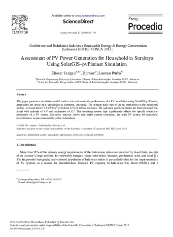 d_5_HASIL SIMILARITY-PROCEDIA-Assessment of PV Power Generation for Household in Surabaya Using SolarGIS–pvPlanner Simulation.pdf Download (1MB) | Preview |
