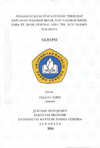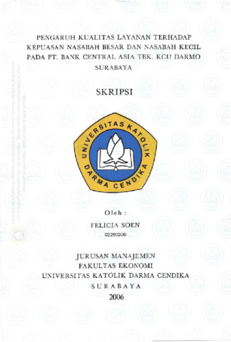 Soen, Felicia (2006) Pengaruh Kualitas Layanan Terhadap Kepuasan Nasabah Besar dan Nasabah Kecil Pada PT. Bank Central Asia TBK. KCU Darmo Surabaya. Undergraduate thesis, Universitas Katolik Darma Cendika Fakultas Ekonomi.