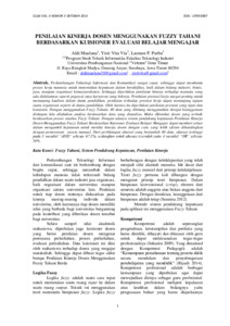 Dosen Menggunakan Fuzzy Tahani Berdasarkan Kuisioner Evaluasi Belajar Mengajar dapat memberi solusi
