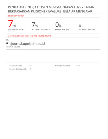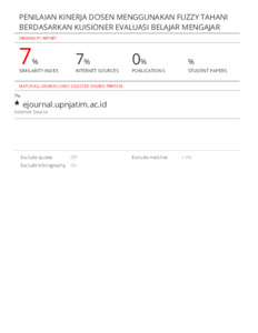 f_7_HASIL SIMILARITY-PENILAIAN KINERJA DOSEN MENGGUNAKAN FUZZY TAHANI BERDASARKAN KUISIONER EVALUASI BELAJAR MENGAJAR (1).pdf Download (534kB) | Preview |