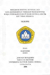 Haryono, Haryono (2006) Pengaruh Insentif, Motivasi, dan Gaya Kepemimpinan Terhadap Produktivitas kerja Studi Kasus pada PT. bank Central Asia Tbk KCP Tidar Surabaya. Undergraduate thesis, Universitas Katolik Darma Cendika Fakultas Ekonomi.