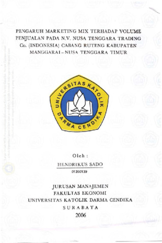 Sado, Hendrikus (2006) Pengaruh Marketing Mix Terhadap Volume Penjualan pada N.V. Nusa Tenggara Trading Co. (Indonesia) Cabang Ruteng Kabupaten Manggarai-Nusa Tenggara Timur. Undergraduate thesis, Universitas Katolik Darma Cendika Fakultas Ekonomi.