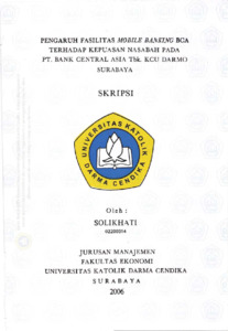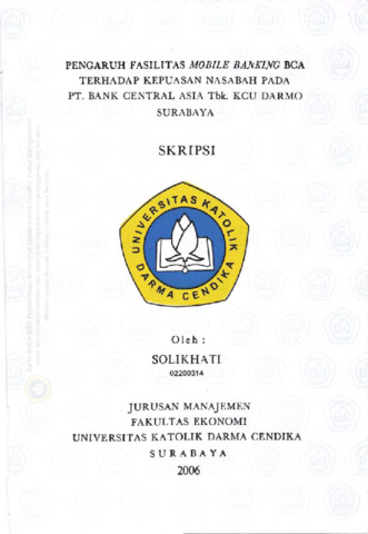 Solikhati, Solikhati (2006) Pengaruh Fasilitas Mobile Banking BCA Tersebut Kepuasan nasabah pada PT. Bank Central Asia Tbk KCU Darmo Surabaya. Undergraduate thesis, Universitas Katolik Darma Cendika Fakultas Ekonomi.