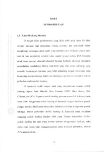 Pada persaingan bank sa:rt ini juga mengalami scnrakin ketat, seperti inovasi tcrbaru BCA herusaha unluk terus mencari alternalif-alternatif layanan bcrbasis tcknologi yangdapat nremudahkan nasahahnya. Hanya bank-bank yang siap sccara tcknologi yang nrcmiliki kcmampuan bertahan yang lcbih dibanding dcngan barrk-hank yang br-'lurn siap sccara loknologi. Salah satu teknologi yang bcrhasil tlitcrapkan ditlunia pcrbankan atlalah rrohilc lttnking. Adapun latar t.rlakang pcnulisarr skripsi yaitu untuk rrcrrgctrhui pcngaruh Irasilitas ,41obllc hunking llCA lcrhadap Kcpuasan Nasabah I'ada I)'l'. Bank Ccntral Asia Tbk. KCI[J Darmo Surabaya. l)crdasarkan latar bclakang masalal], maka perumusan rrrasalahnya atlalah apakah lirsililas rrohilc btnking lXlA yang terdiri dari rrrcrrrlrcrikan kcrnudaharr, praktis. kcarnarran, kcrtyantanan, tlarr rrscr .fricndly secara simultan dan parsial berpengaruh terhadap kcpuasan nasabah pada PT. Bank Central Asia l'bk. KCU Darmo Surabaya ? Diantara variabel kenrudahan, praktis, keamanan, kenyamanan, dan user .liiendly manakah yang mcmpr.rnyai pcngaruh dominan terhadap kepuasan nasabah pada PT. Bank Central Asia Tbk. KCU Darmo Surabaya ? Tujuan penelitian adalah untuk mengetahui apakah l-asilitas nnbile bonking BCA yang terdiri dari menrberikan kemudahan, praktis, keamanan, kenyamanan, dan lser friendly secara sinrultan dan parsial berpcngaruh terhadap kepuasan nasabah pada PT'. Bank Central Asia Tbk. KCU Darmo Surabaya. Dan untuk mcngetahui manakah diantara variabel kemudahan, praktis. kcarnanan, kenyamanan. dan rrscr ./i,iendly yang berpengaruh dominan terhadap kcpuasan nasabah pada PT Bank Central Asia Tbk. KCU Darmo Surabaya ?