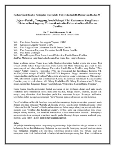 Naskah Orasi Ilmiah : Peringatan Dies Natalis Universitas Katolik Darma Cendika Ke-35