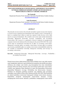 | Uncontrolled Keywords: | Institusional Ownership ; Managerial Ownership ; Leverage ; Profitability ; Accounting Conservatism |