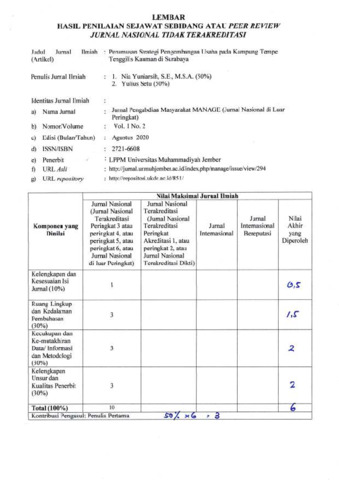 PEER REVIEW FIX 1 JURNAL ABDIMAS PERUMUSAN STRATEGI PENGEMBANGAN USAHA PADA KAMPUNG TEMPE.pdf Download (207kB) | Preview |