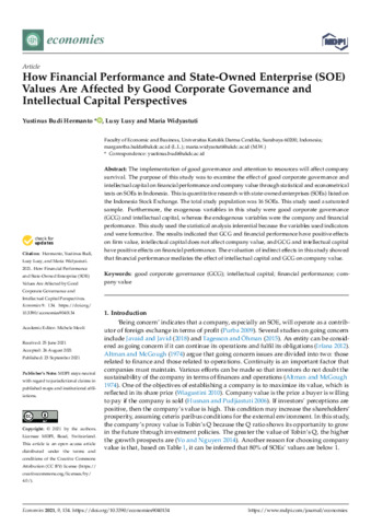 Hermanto, Yustinus Budi and Lusy, Lusy and Widyastuti, Maria (2021) How Financial Performance and State-Owned Enterprise (SOE) Values Are Affected by Good Corporate Governance and Intellectual Capital Perspectives. Economies, 9 (4). pp. 1-13. ISSN E: 2227-7099