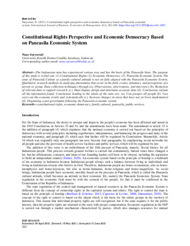 Suryawati, Nany (2021) Constitutional rights perspective and economic democracy based on Pancasila economic system. International Journal of Business, Economics & Management (IJBEM), 4 (1). pp. 262-268. ISSN 2632-9476 (Online)