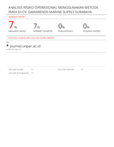 HASIL SIMILARITY-ANALISIS RISIKO OPERASIONAL MENGGUNAKAN METODE FMEA.pdf Download (795kB) | Preview |
