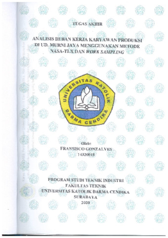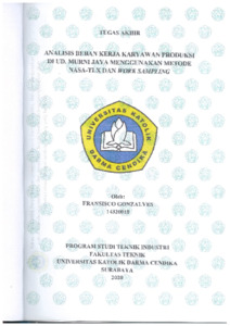 Gonzalves, Fransisco (2020) Analisis Beban Kerja Karyawan produksi di UD. Murni Jaya Menggunakan Metode Nasa-TLX dan Work Sampling. Undergraduate thesis, Universitas Katolik Darma Cendika Fakultas Teknik.