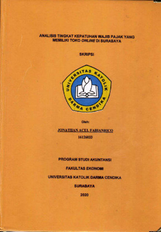 Fabianrico, Jonathan Acel (2020) Analisis Tingkat Kepatuhan Wajib Pajak Yang Memiliki Toko Online di Surabaya. Undergraduate thesis, Universitas Katolik Darma Cendika Surabaya Fakultas Ekonomi.