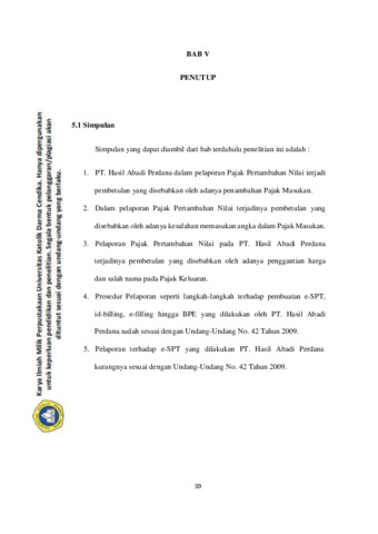 The purpose of this research is to find out if the e-SPT reporting on value added tax conducted by PT. Abadi Perdana result is in accordance with the Tax Regulation Law No. 42 year 2009. This reporting is very important for every