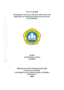 Saogo, Aschensio (2020) Integrasi Analisa STP Dan SWOT Dalam Perumusan Strategi pemasaran Pada UD DARMUJI. Undergraduate thesis, Universitas Katolik Darma Cendika Fakultas Teknik.