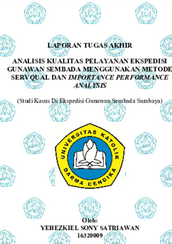 Satriawan, Yehezkiel Sony (2020) Analisis Kualitas Pelayanan Ekspedisi Gunawan Sembada Menggunakan Metode Servqual dan Importance Perfomance Analysis. Undergraduate thesis, Universitas Katolik Darma Cendika Fakultas Teknik.