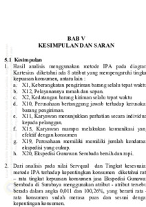 Semakin komplek kegiatan pada perusahaan jasa, keluhan perusahaan juga akan sering ditemukan. kecepatan dan ketepatan sangat penting bagi perusahaan pengiriman. tujuan dalam penelitian ini adalah mengetahui jenis atribut yang mempengaruhi tingkat kepuasan konsumen. menentukan tingkat kepuasan konsumen dan memberikan usulan perbaikan yang didapat