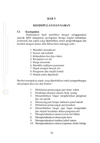 yang dibutuhkan tersebut. Pada penelitian ini bertujuan untuk melakukan pengembangan terhadap alat pengisi daya aki atau baterai menggunakan metode QFD (Quality Function