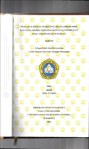 Alex, Alex (2021) Pengaruh Digital Marketing, Brand Ambassador, dan Citra Merek Terhadap Keputusan Pembelian pada Tokopedia di Surabaya. Undergraduate thesis, Universitas Katolik Darma Cendika Fakultas Ekonomi.