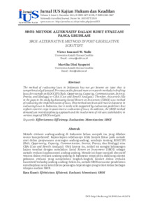 Metode evaluasi undang-undang di Indonesia belum menjadi isu yang dibahas secara komprehensif. Kajian-kajian sebelumnya lebih banyak fokus pada metode riset dalam penyusunan rancangan undang-undang, misalnya tentang ROCCIPI (Rule, Opportunity, Capacity, Communication, Interest, Process, dan Ideology) atau CBA (Cost and Benefit Analysis). Oleh karena itu, artikel ini mengisi kekosongan kajian tersebut dengan membahas Social Return on Investment (SROI) sebagai metode evaluasi implementasi undang-undang. Metode ini dapat menjadi alternatif wacana dalam evaluasi undang-undang di Indonesia tetapi perlu didukung adanya pedoman evaluasi yang menjelaskan langkah-langkah konkrit dalam evaluasi kuantitatif terhadap undang-undang. Selain itu, metode SROI menuntut pendekatan interdisipliner serta keterlibatan pemangku kepentingan yang terkait dalam berbagai tahapan analisis SROI.
