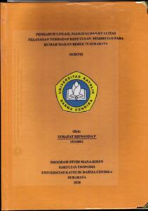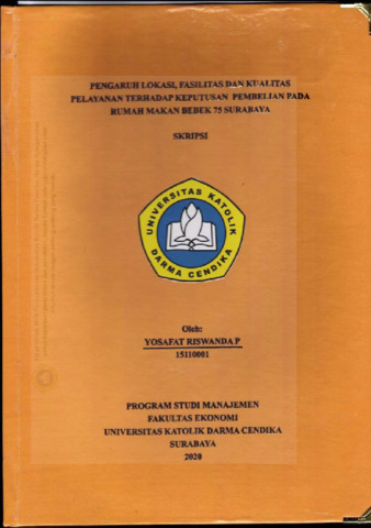 Riswanda, Yosafat (2020) Pengaruh Lokasi, Fasilitas dan Kualitas Pelayanan Terhadap Keputusan Pembelian pada Rumah Makan Bebek 75 Surabaya. Undergraduate thesis, Universitas Katolik Darma Cendika Fakultas Ekonomi.
