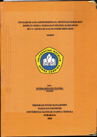 Chandra, Hendra Ronaldi (2020) Pengaruh Gaya Kepemimpinan. Motivasi Kerja dan Disiplin kerja Terhadap Kinerja Karyawan di CV. Artha Buana Mandiri Sidoarjo. Undergraduate thesis, Universitas Katolik Darma Cendika Fakultas Ekonomi.