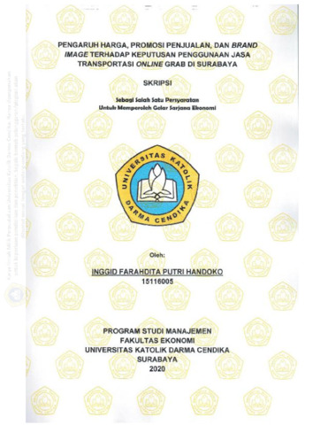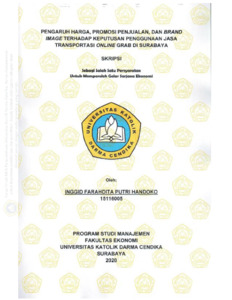 Handoko, Inggid Farahdita (2020) Pengaruh Harga, promosi Penjualan, dan brand Image Terhadap Keputusan Pengunaan jasa Transportasi Online Grab di Surabaya. Undergraduate thesis, Universitas Katolik Darma Cendika Fakultas Ekonomi.