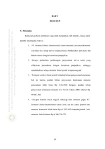 Pada bagian akhir penelitian ini disimpulkan bahwa yang menjadi dasar dalam perhitungan penyusutan daftar aktiva tetap yang dimiliki perusahaan, perolehan harga aktiva tetap sudah sesuai dengan ketentuan perpajakan yang berlaku yaitu memasukan semua biaya yang dikeluarkan sampai aset siap digunakan, umur ekonomis, dan nilai sisa setiap aktiva tetapnya hanya berdasarkan perkiraan, dan belum sesuai dengan ketentuan perpajakan, metode penyusutan menggunakan metode garis lurus, adanya beberapa aktiva tetap yang seharusnya sudah tidak dihitung masa manfaat/umur ekonomisnya menurut ketentuan perpajakan namun pihak perusahaan masih menghitungnya. Terjadi perbedaaan laba antara perusahaan dan laba menurut fiskal dikarenakan perbedaan cara menghitung penyusutan secara PSAK No 16 dan Ketentuan Perpajakan. Perhitungan penyusutan aktiva tetap menggunakan ketentuan perpajakan akan menghasilkan laba yang lebih kecil bagi perusahaan. Semakin kecilnya laba yang didapat maka pajak penghasilan yang akan dibayarkan juga akan semakin kecil juga.