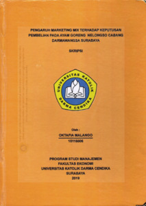 Malango, Oktafia (2020) Pengaruh Marketing Mix Terhadap Keputusan Pembelian pada Ayam Goreng Nelongso Cabang Darmawangsa Surabaya. Undergraduate thesis, Universitas Katolik Darma Cendika Fakultas Ekonomi.