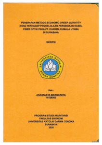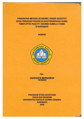 Margareta, Anastasya (2020) PENERAPAN METODE ECONOMIC ORDER QUANTITY (EOQ) TERHADAP PENGELOLAAN PERSEDIAAN KABEL FIBER OPTIK PADA PT. DHARMA KUMALA UTAMA DI SURABAYA. Undergraduate thesis, Universitas Katolik Darma Cendika Fakultas Ekonomi.