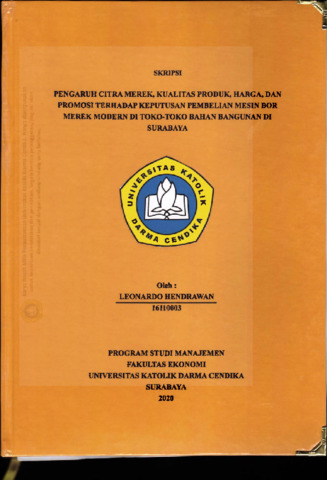 Hendrawan, Leonardo (2020) Pengaruh Citra Merek, Kualitas Produk,Harga,Dan Promosi Terhadap Keputusan Pembelian Mesin BOR Merek Modern di Toko-Toko Bahan Bangunan di Surabaya. Undergraduate thesis, Universitas Katolik Darma Cendika Fakultas Ekonomi.