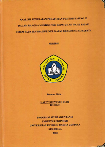 Budi, Happy Stevanus (2020) Analisis Penerapan PP 23 Dalam Rangka Mendorong Kepatuhan Wajib Pajak UMKM Sentra Kuliner Kapas Krampung Surabaya. Undergraduate thesis, Universitas Katolik Darma Cendika Fakultas Ekonomi.