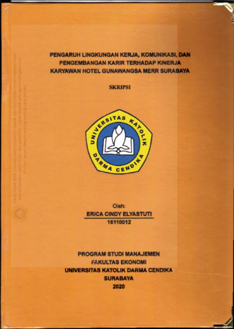 Elyastuti, Erica Cindy (2020) Pengaruh Lingkungan Kerja, Komunikasi, Dan Pengembangan karir Terhadap Kinerja Karyawan Hotel Gunawamgsa Merr Surabaya. Undergraduate thesis, Universitas Katolik Darma Cendika Fakultas Ekonomi.