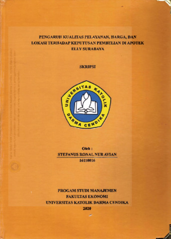 Avian, Stefanus Ronal Nur (2020) Pengaruh Kualitas Pelayanan, harga, dan Lokasi Terhadap Keputusan Pembelian di Apotek Elly Surabaya. Undergraduate thesis, Universitas Katolik Darma Cendika Fakultas Ekonomi.