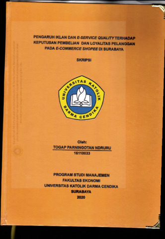 Ndururu, Togap Parningotan (2020) Pengaruh Iklan dan E-Service Quality Terhadap Keputusan Pembelian dan Loyalitas Pelanggan pada E-Commerce Shopee di Surabaya. Undergraduate thesis, Universitas Katolik Darma Cendika Fakultas Ekonomi.